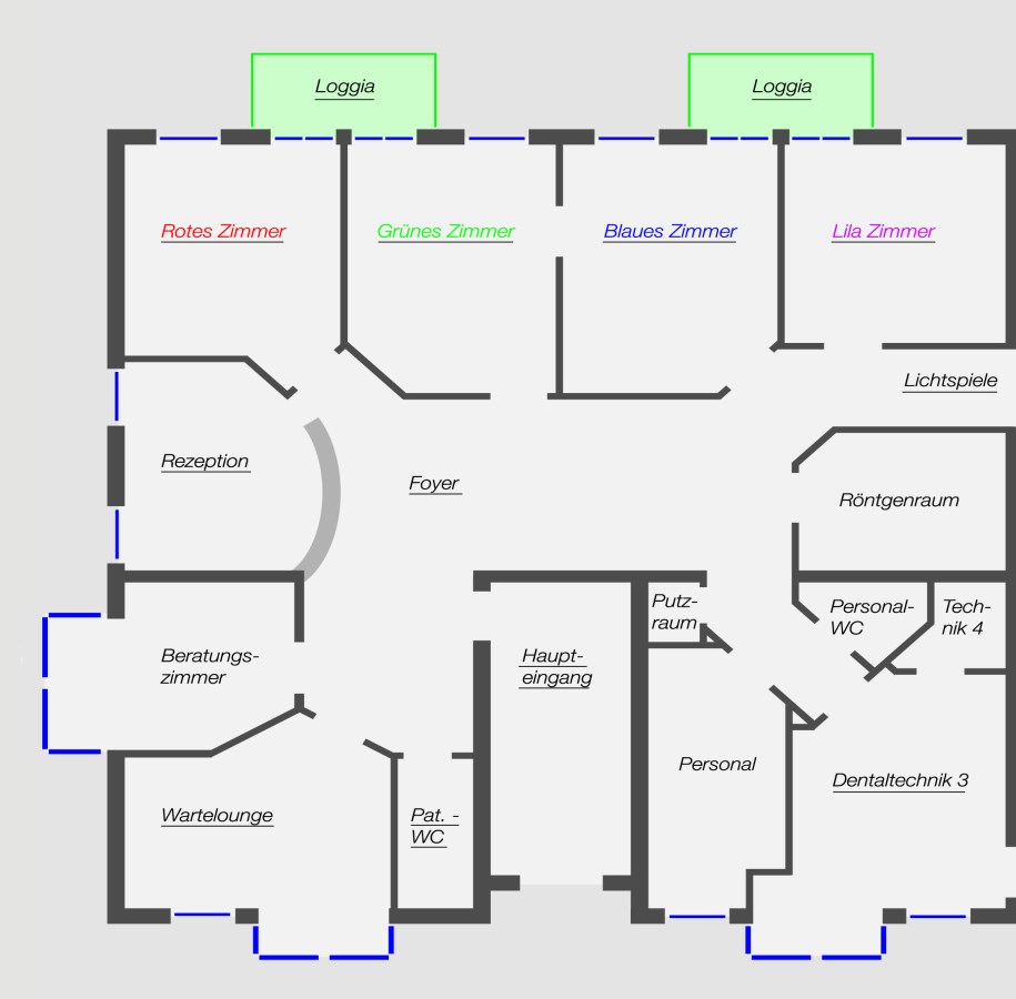 Vor der Praxis ein Parkdeck mit Gratis-Parkplätzen